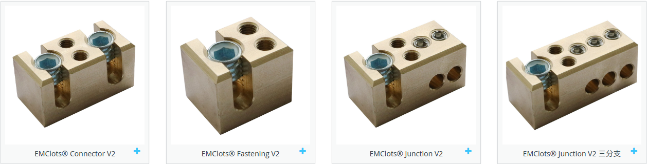 EMClots® Junction V2 元件适用于 4 至 16 mm² 或 25 至 35 mm² 的绞合导体或超细导体电缆,用于连接三根导体或形成短路,可安装在电缆桥架、横梁及其他导电系统组件上。