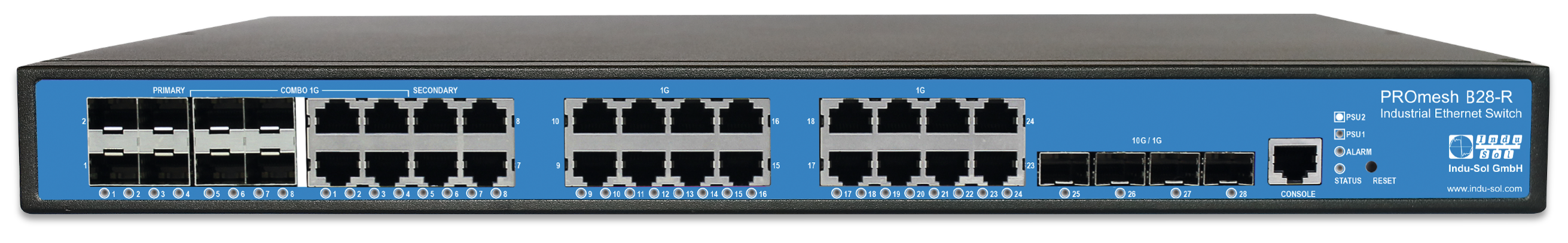 PROmesh B28-R 是一款工业级 19 英寸网管型以太网交换机,支持最高 1.0 Gbps 的数据传输速率。拥有链路聚合功能以及适用于 -40°C 至 +75°C 温度范围的坚固设计,适合在严苛的环境中使用。